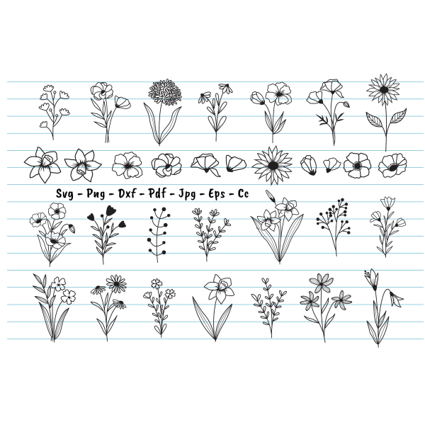 32Flower Svg, Wildflower Svg, Flowers And Leaf Botanital Element Svg, Floral Svg, Flower Svg Files For Cricut And Silhouette